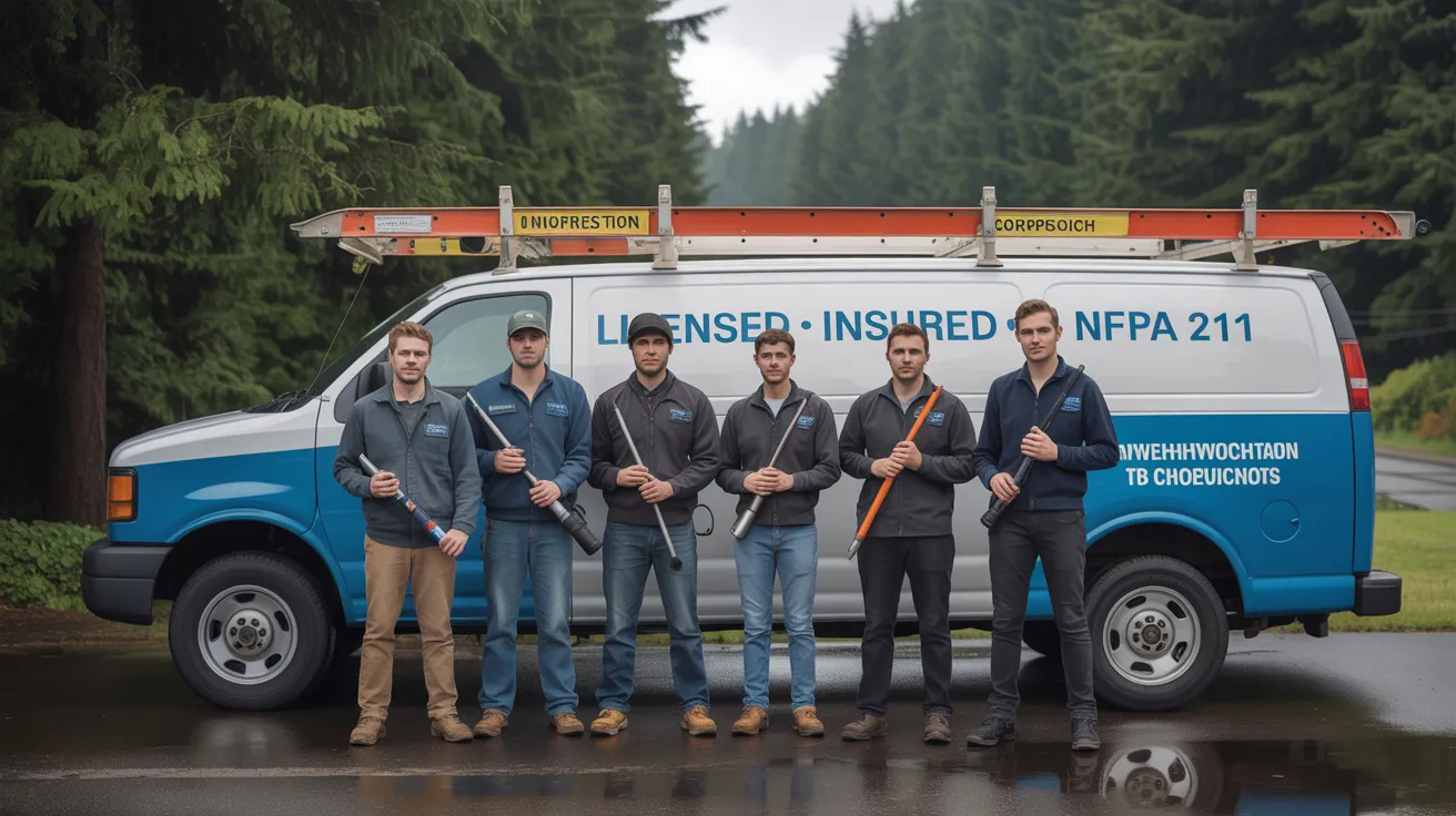 Our service map illustrates where we operate across Washington's main cities and outlying regions, highlighting our service offerings and upfront rates. You can view precise county lines, live service zones from each location, and current appointment openings. Type in your address to check availability for service options including chimney sweeping, Level 1-2 inspections, repair work, or gas appliance care.